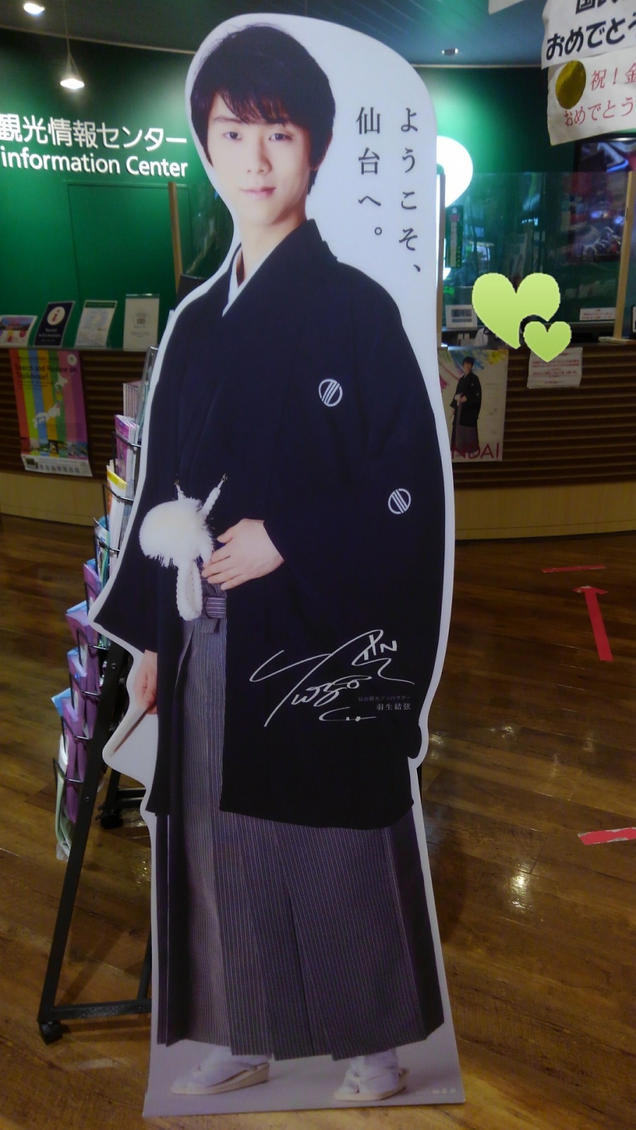 仙台駅にある観光案内所にある羽生結弦くんの等身大?パネル。