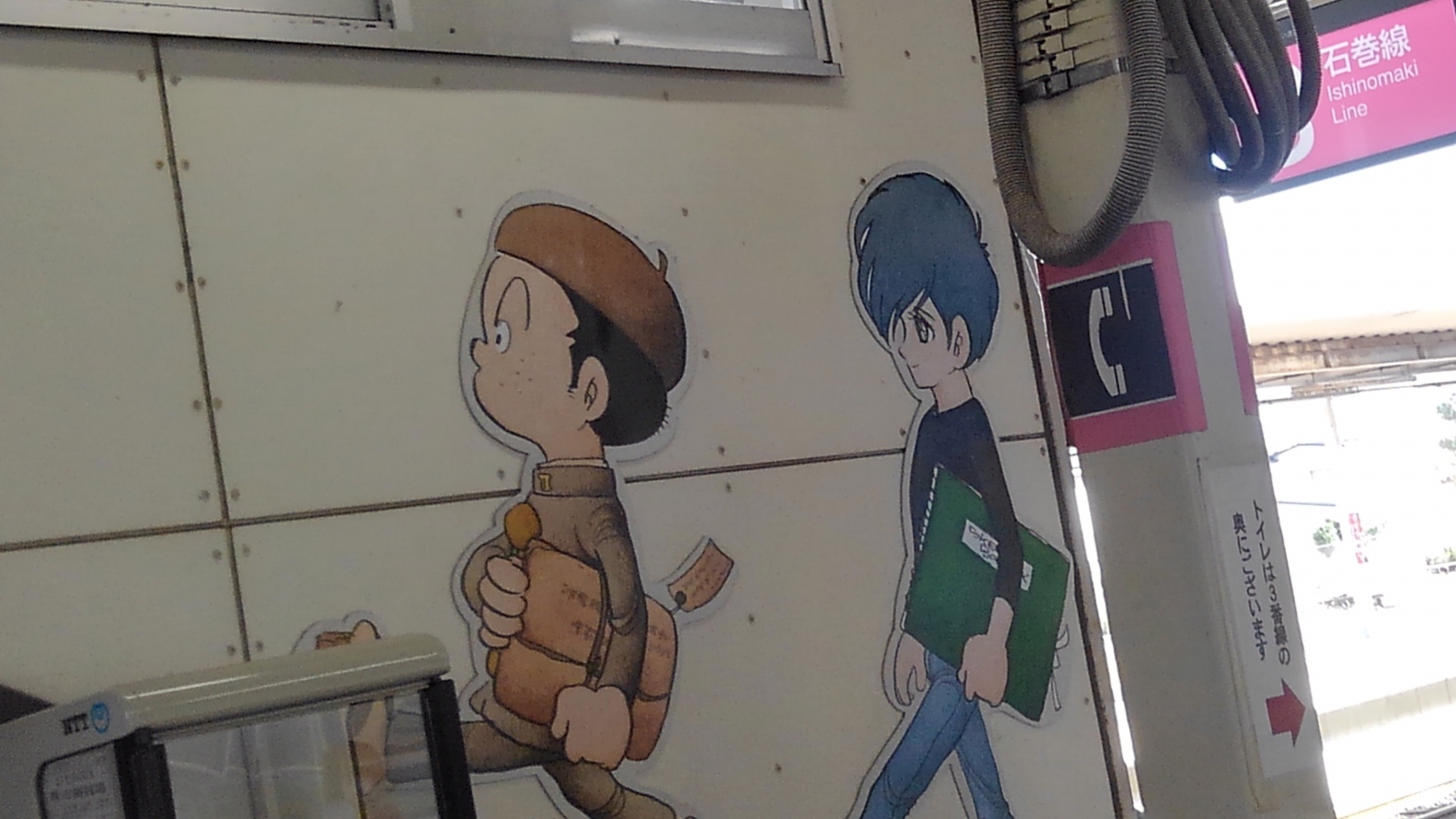 石巻駅内のイラストから期待が高まる。
