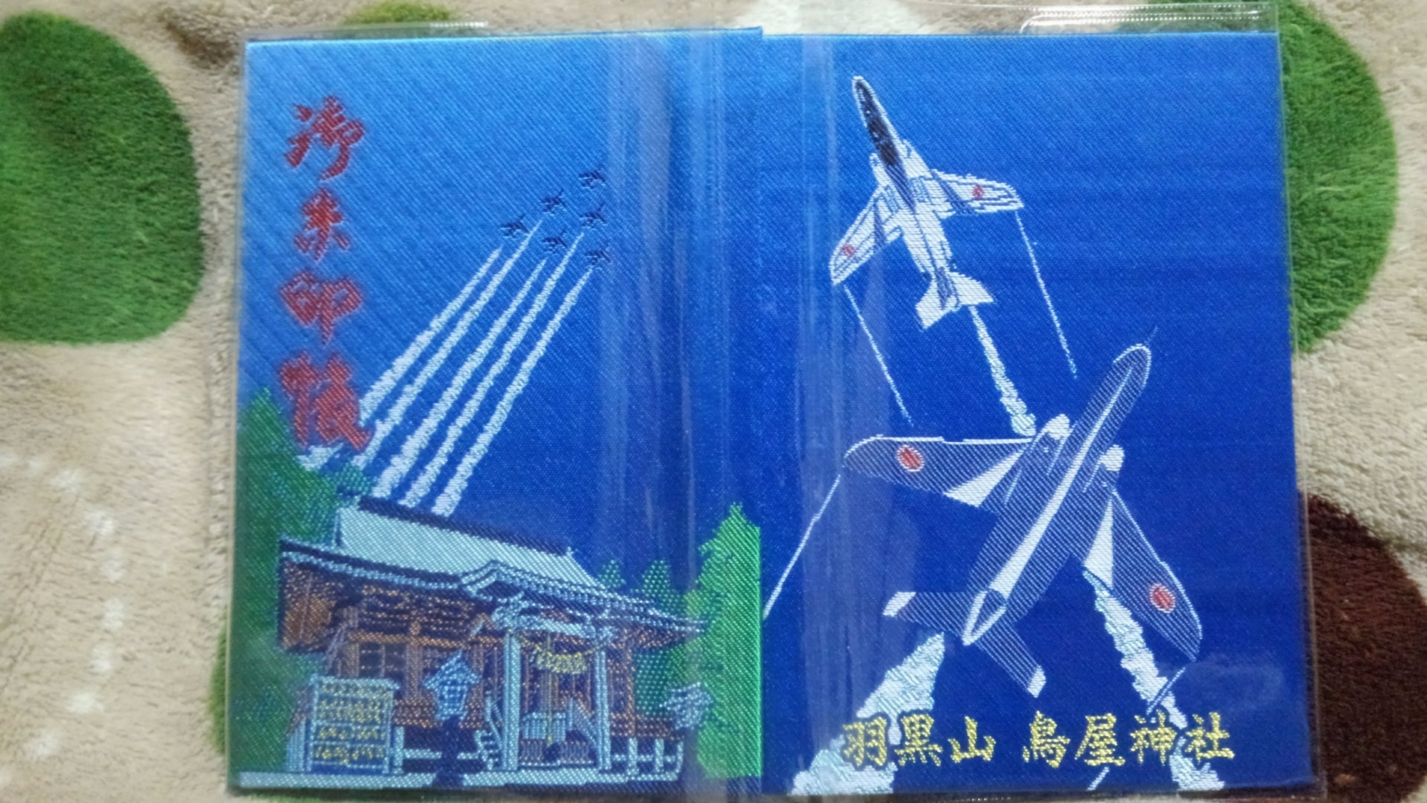 ブルーインパルスの御朱印帳と御守りがあるんです。